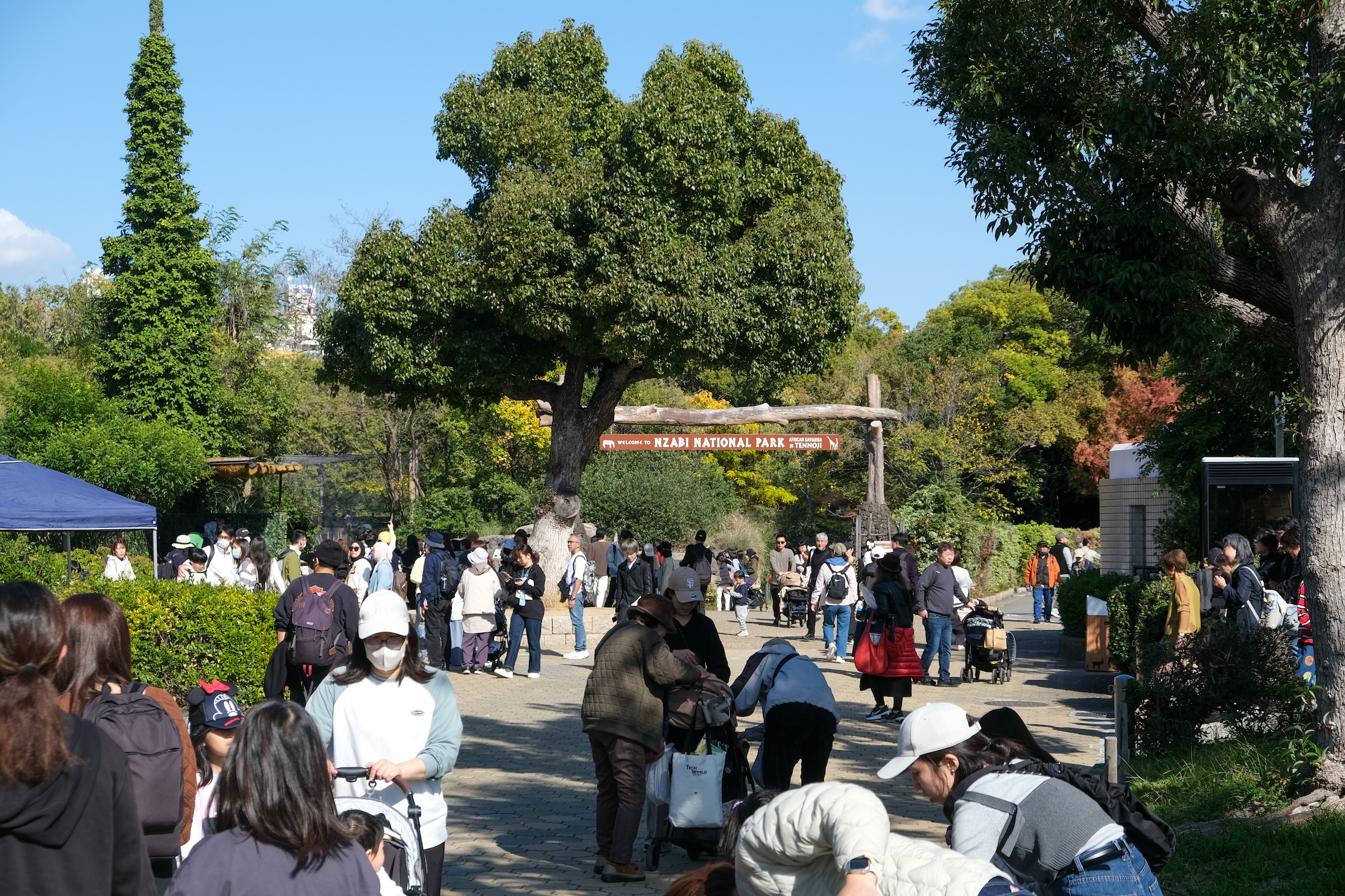 集合場所は、天王寺動物園の新世界ゲート。イベントスタッフ用のパスを受け取って入場します。早くも多くの人々が行き交う園内を見学しながら、控え室に移動し、打ち合わせを行いました。