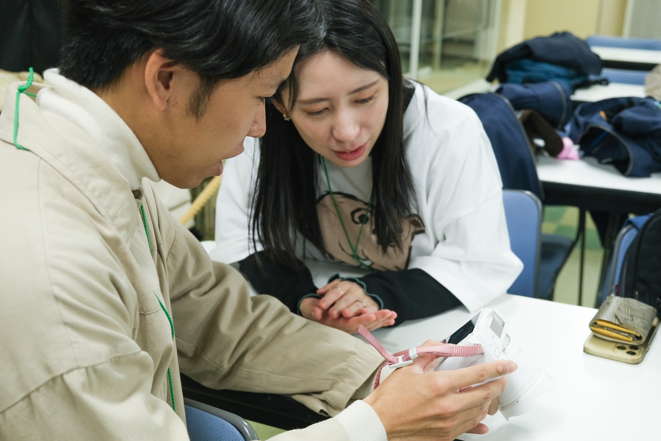 「サークルで撮影することは多いけど、写真を専攻しているわけではないのでうまく撮れているか少し心配」と話しながらも、コミュニケーションを取りながら着々と撮影をこなします。