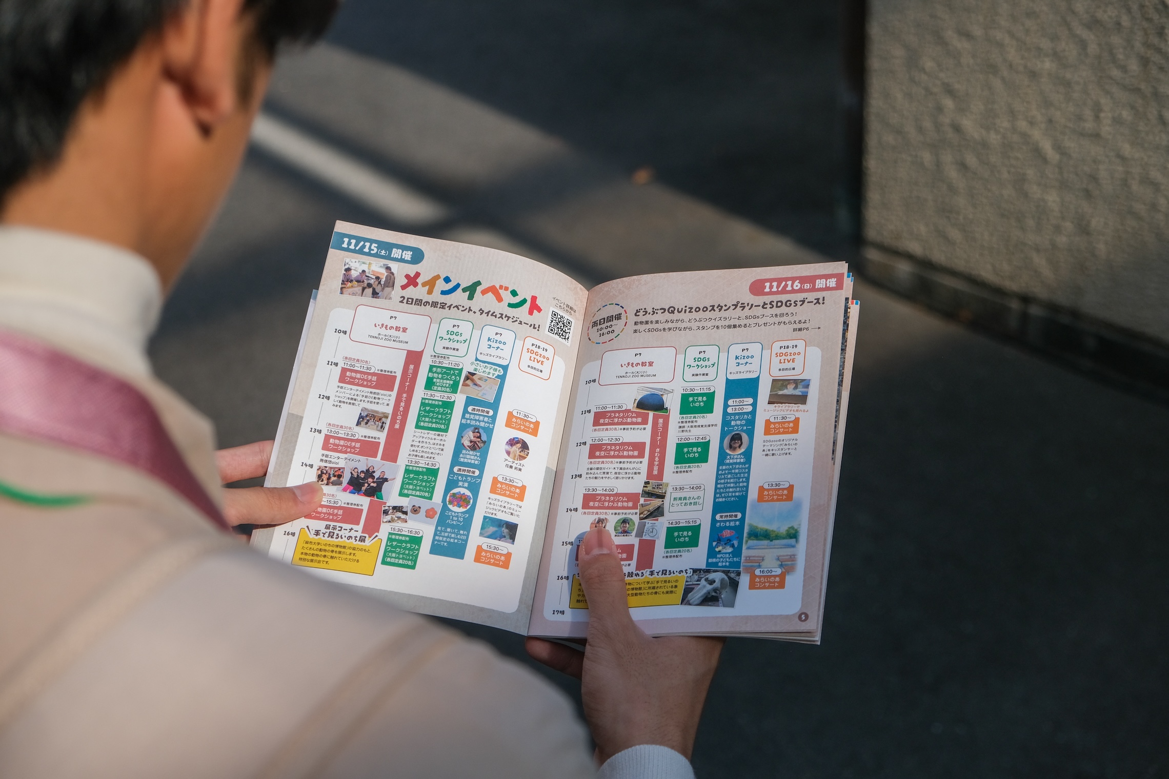 京都で暮らしており「天王寺動物園に来るのは初めて」という袴田さん。まずはパンフレットを読み込み、園内に展開された各コーナーの配置や内容を把握します。タイムテーブルも確認し、ワークショップやステージイベントにも備えました。