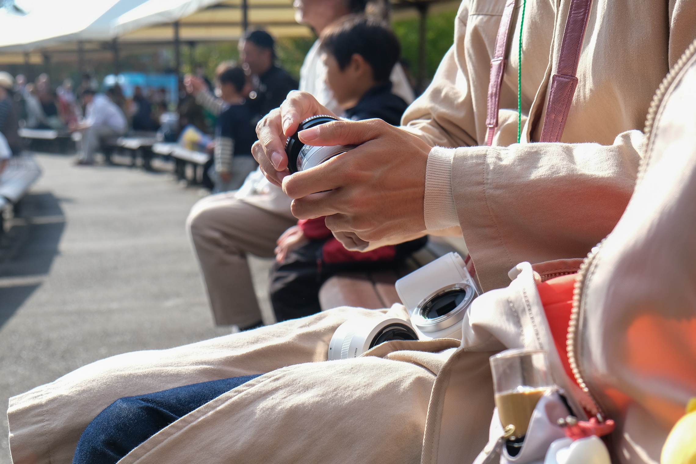 園内をぐるりと歩きたどり着いたステージでは、まもなく始まるライブの準備中。ここでは、準備していたもう1本のレンズに手早く交換し、ステージとの距離をさまざま試しながら撮影に臨みました。